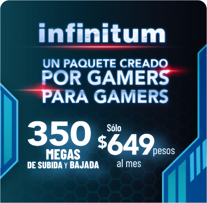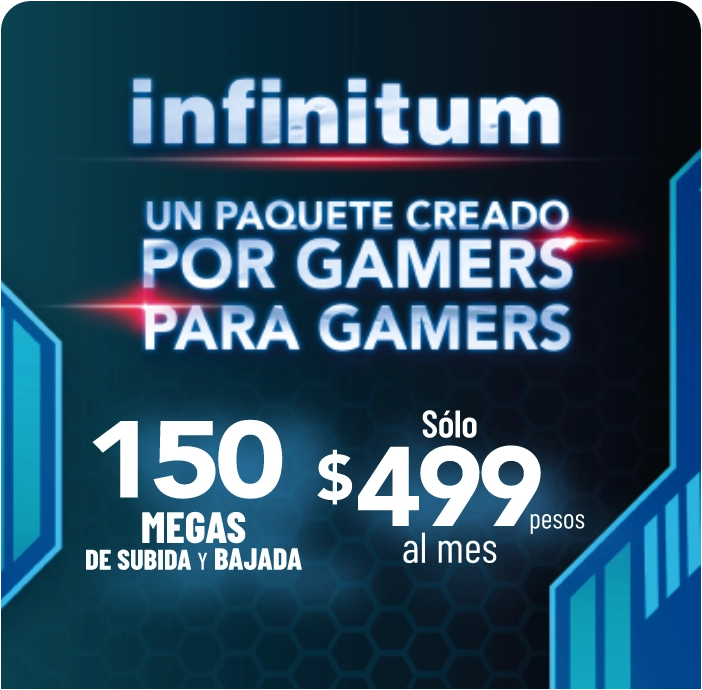 Por eso, Infinitum Gamer está diseñado por gamers, para gamers, desde 150 Megas misma velocidad de subida y bajada ideal para videojuegos, streaming,