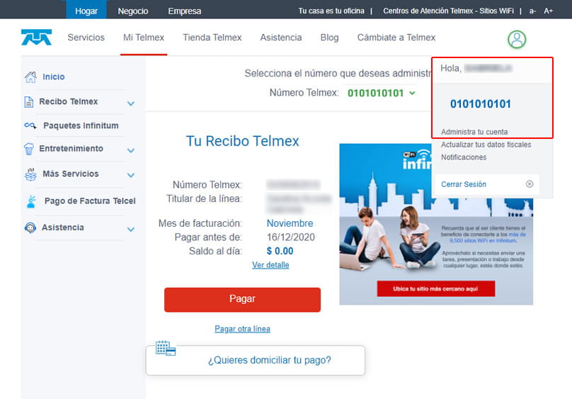 1. Ingresa a Mi Telmex con tus datos de acceso registrados.